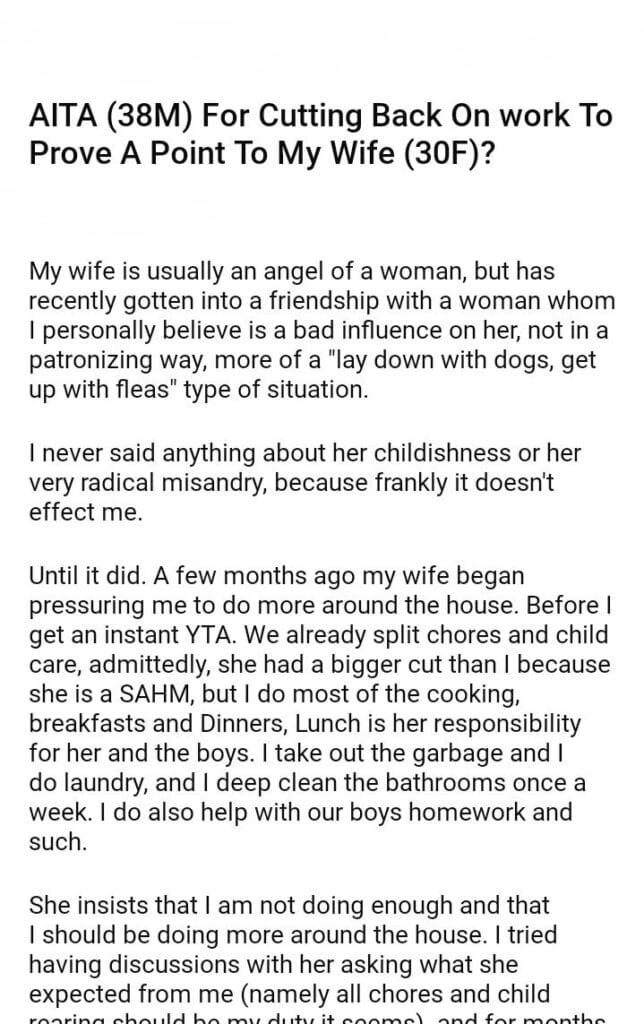 AITA (38M) For work To Prove A Point To My Wife (30F)?