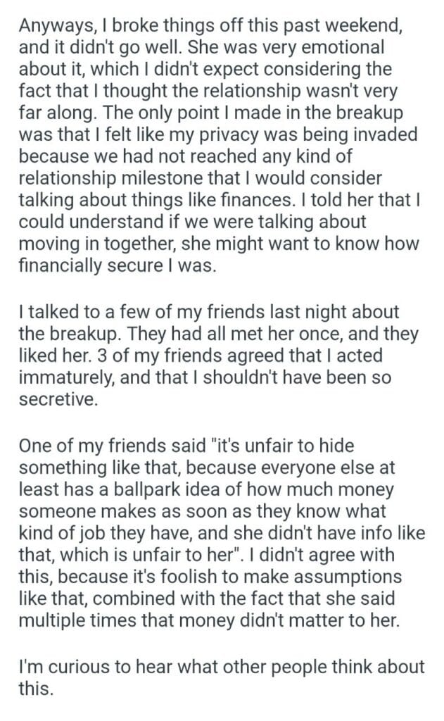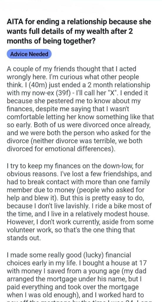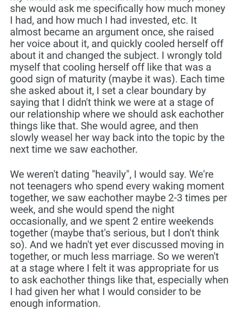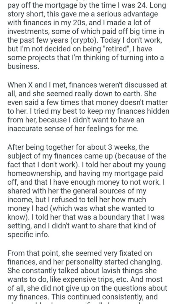 AITA because she wants full details