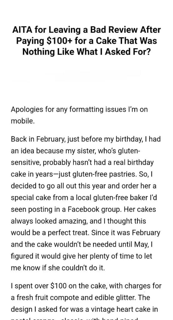 AITA for a Cake That Was Nothing Like What I Asked For?