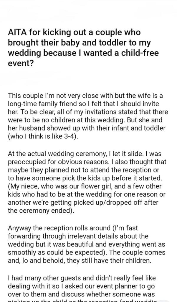 AITA for a couple who brought their baby and toddler to my wedding?