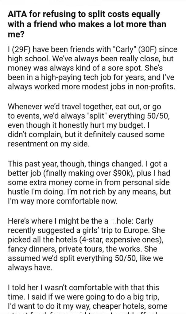AITA for a friend who makes a lot more than me?