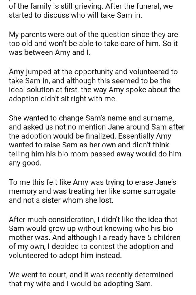 AITA for adopting the child my sister wanted to adopt?