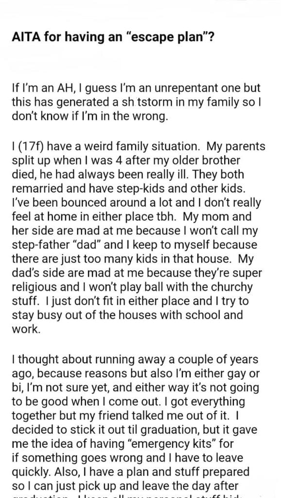AITA for an “escape plan”?