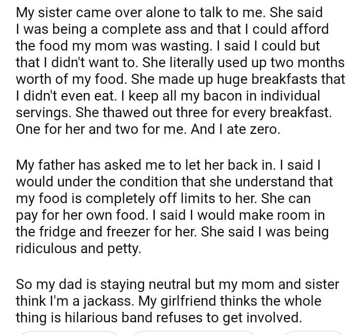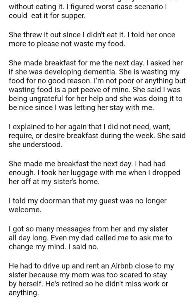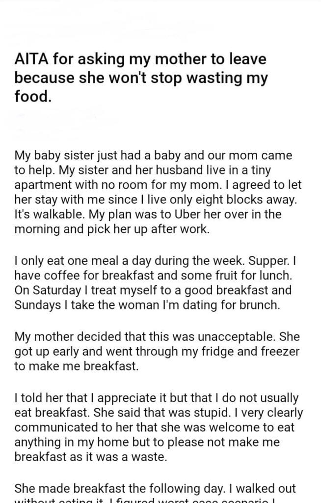 AITA for asking my mother to leave because she won’t stop wasting my food.