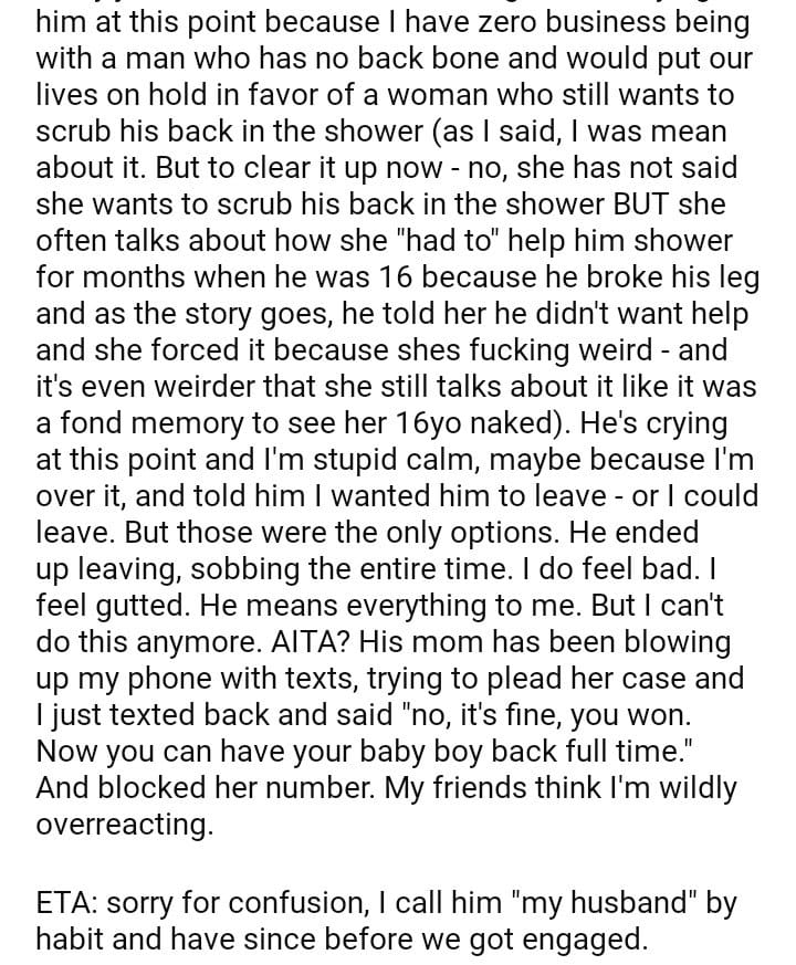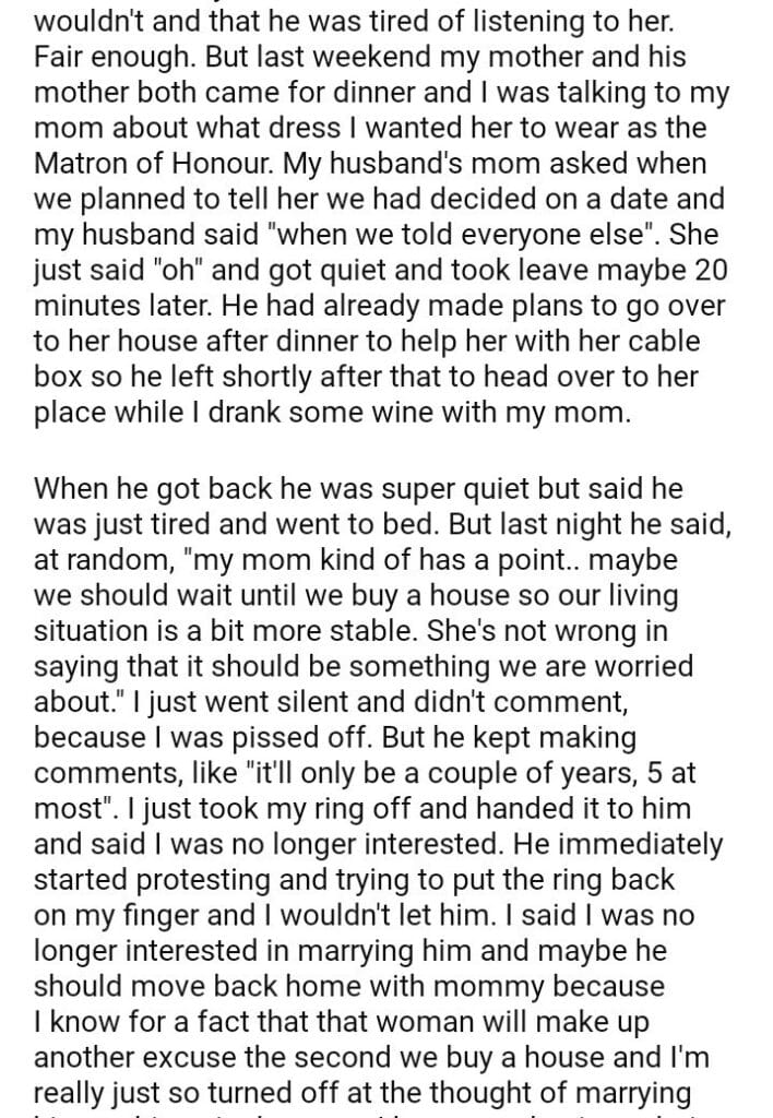AITA for calling off my wedding and telling my fiancé to move back home with mommy?