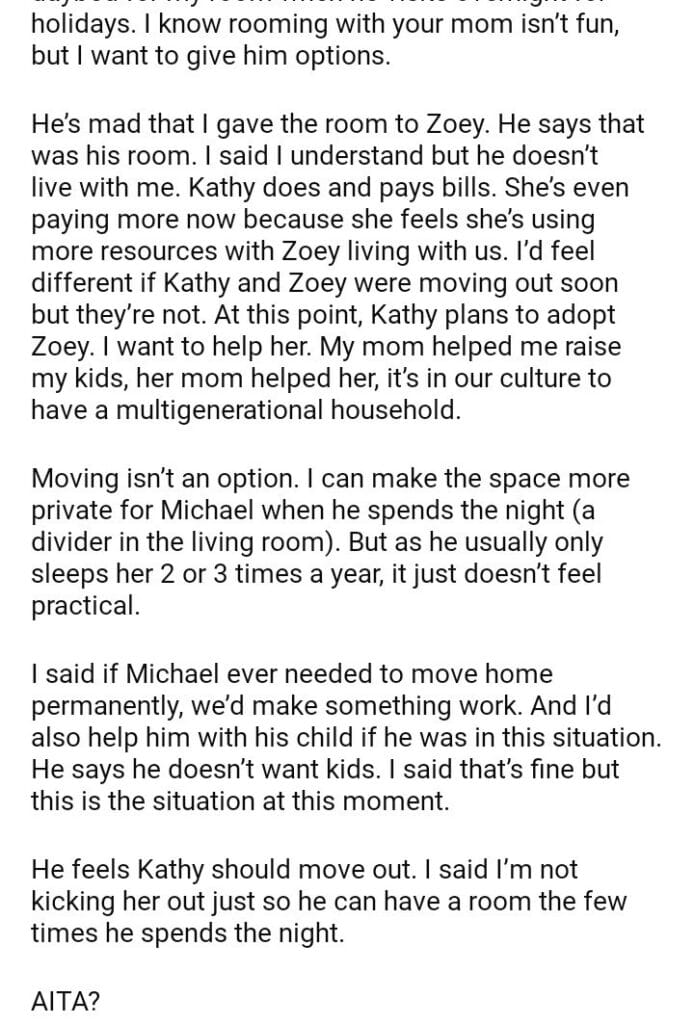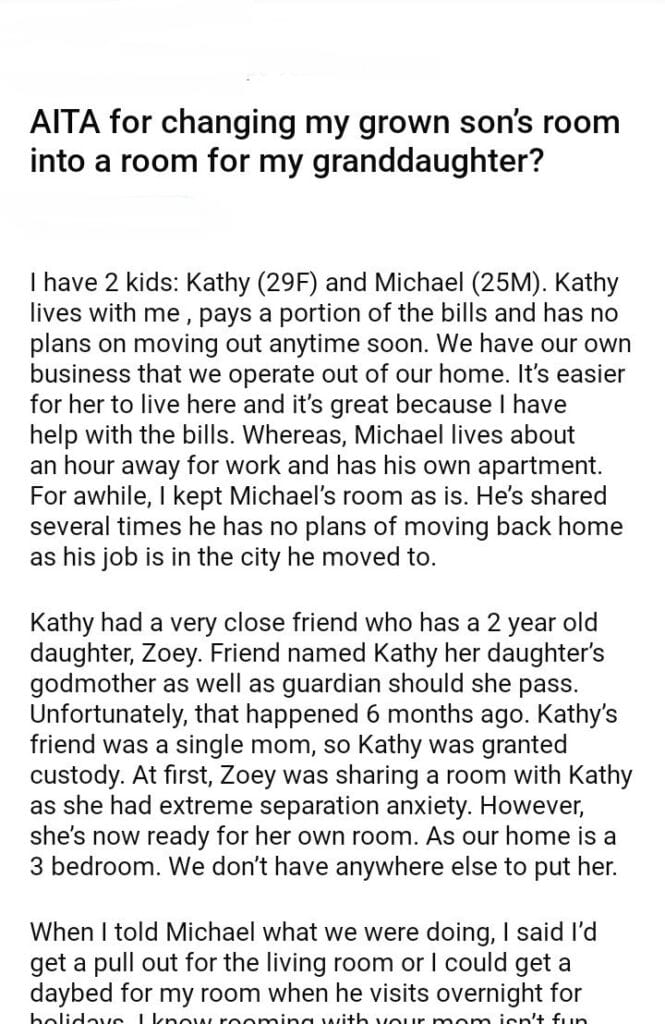 AITA for changing my grown son’s room into a room for my granddaughter?
