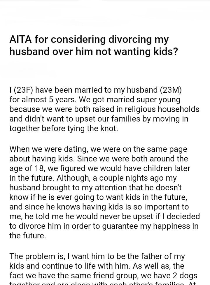 AITA for considering divorcing my husband over him not wanting kids?