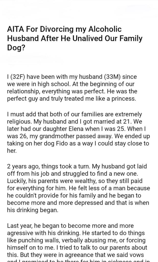 AITA For Divorcing my Husband Over Our Family Dog?