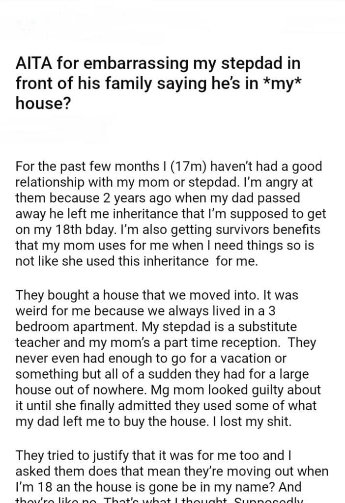 AITA for embarrassing my stepdad in front of his family saying he’s in my house?