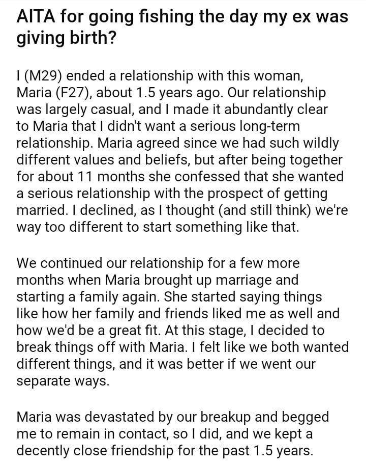 AITA for going fishing the day my ex was giving birth?