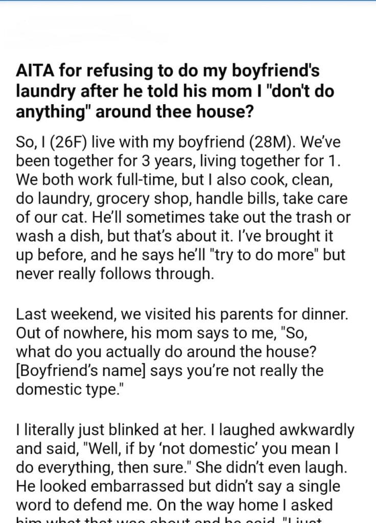 AITA for my boyfriend’s laundry