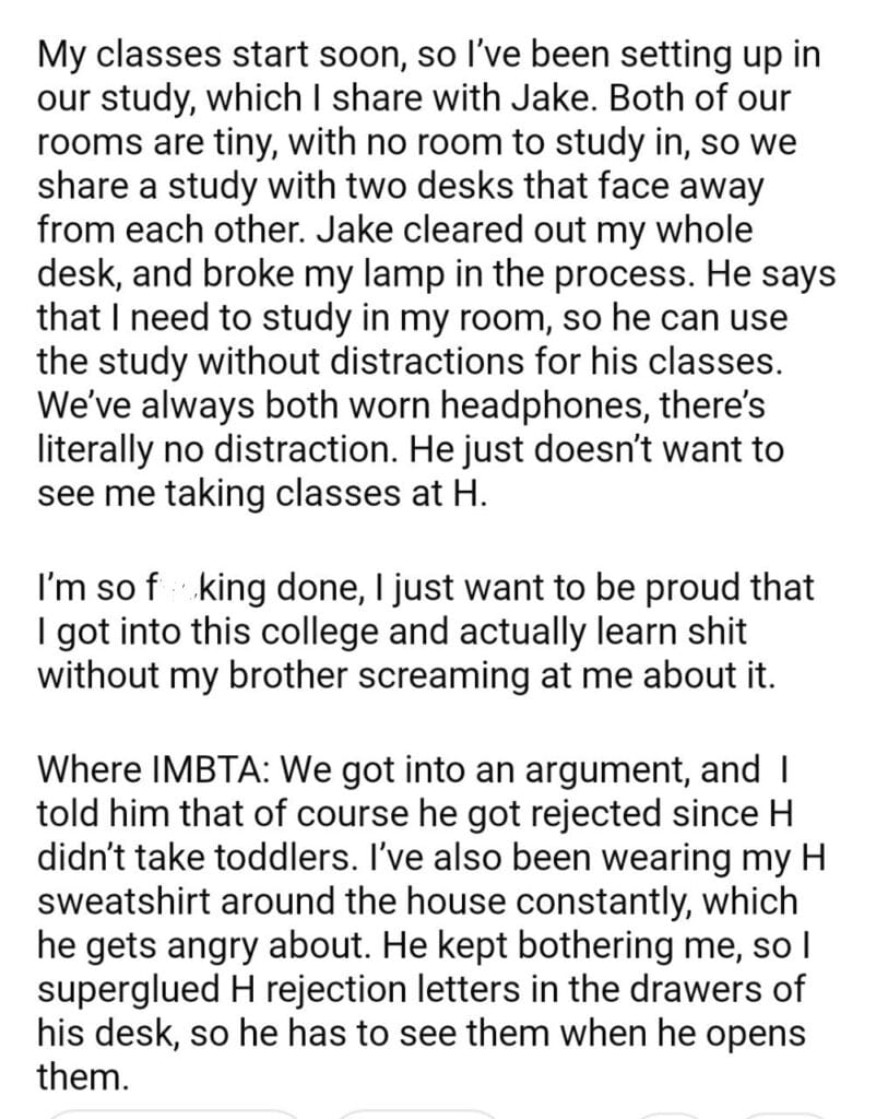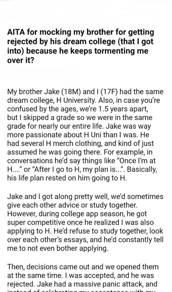 AITA for my brother dream college