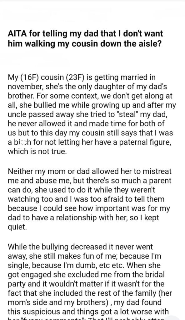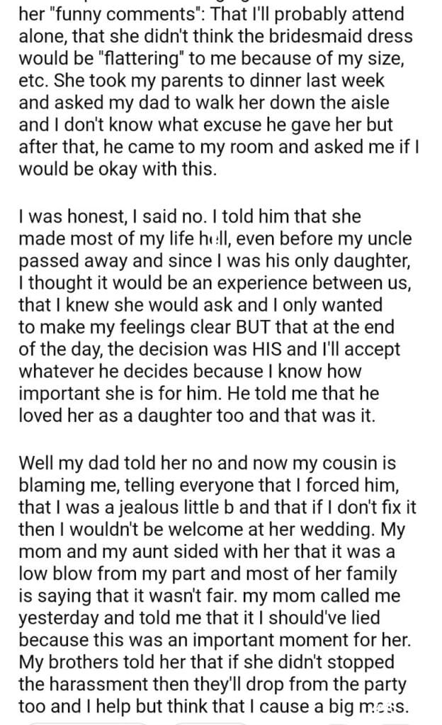 AITA for my cousin down the aisle?