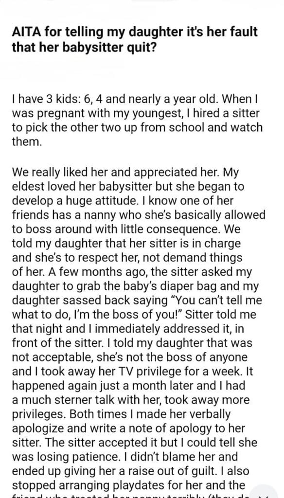 AITA for my daughter babysitter