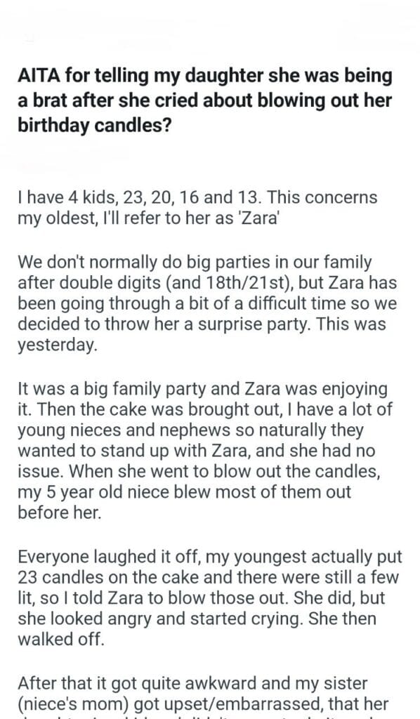 AITA for my daughter birthday candles
