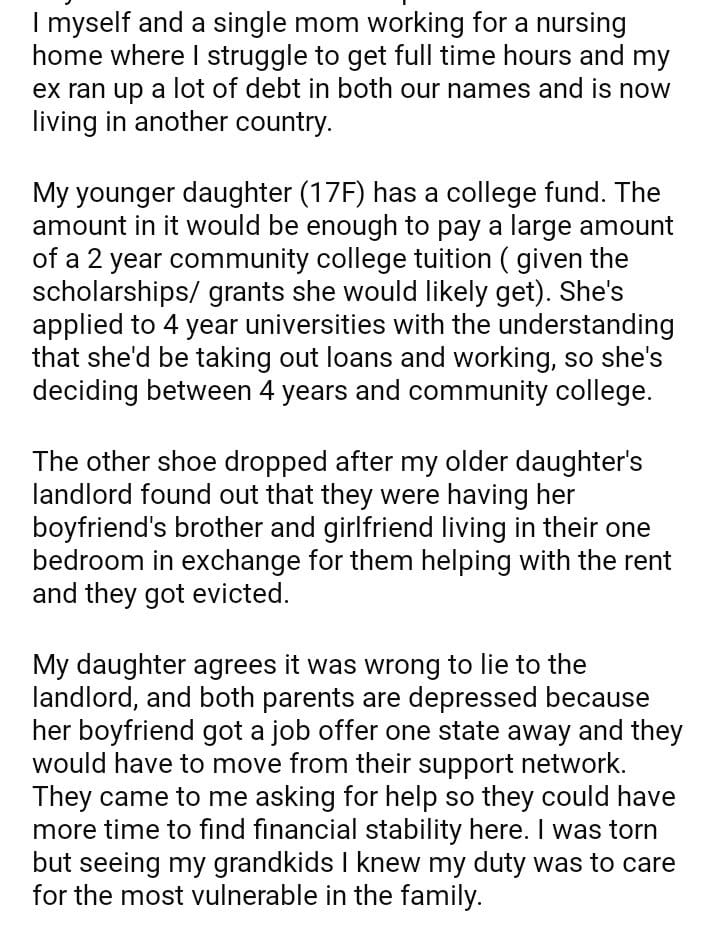 AITA for my daughter’s college because her sister just gave birth to her 4th child?
