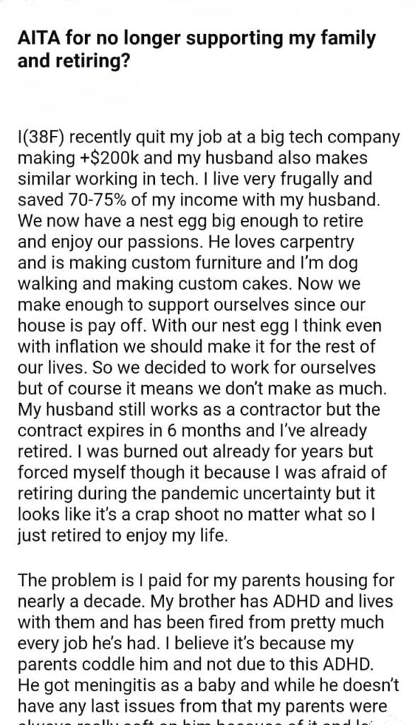 AITA for my family and retiring?