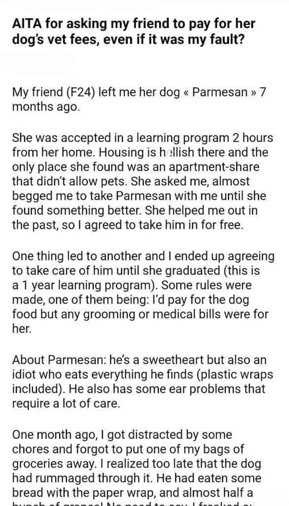 AITA for my friend dog’s vet fees