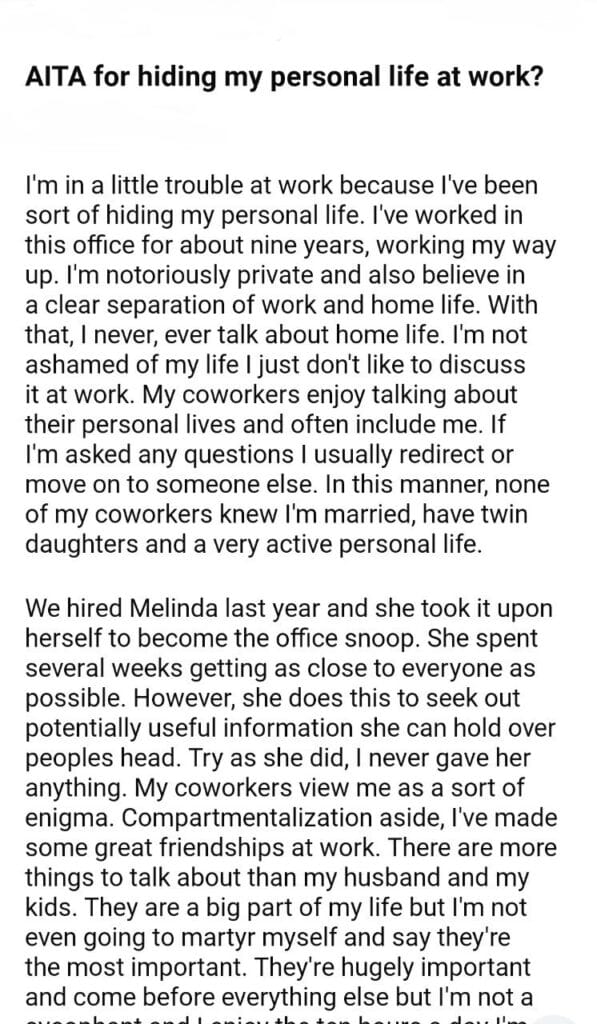 AITA for my life at work?