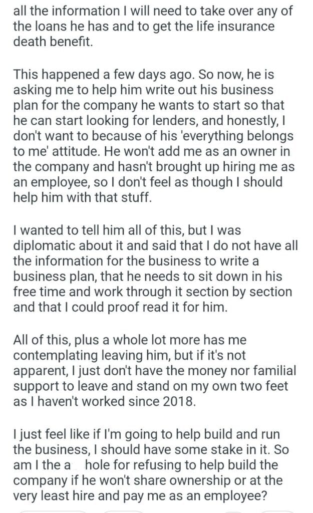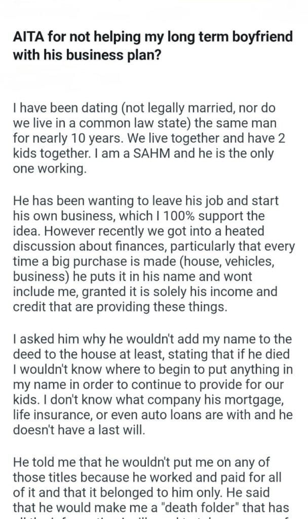 AITA for my long term boyfriend business plan?