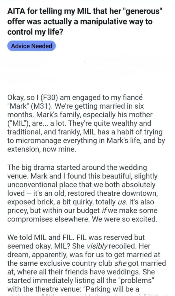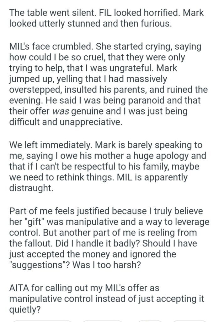 AITA for my MIL generous offer