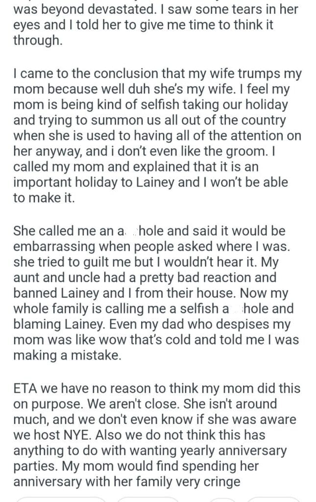 AITA for my mom’s wedding