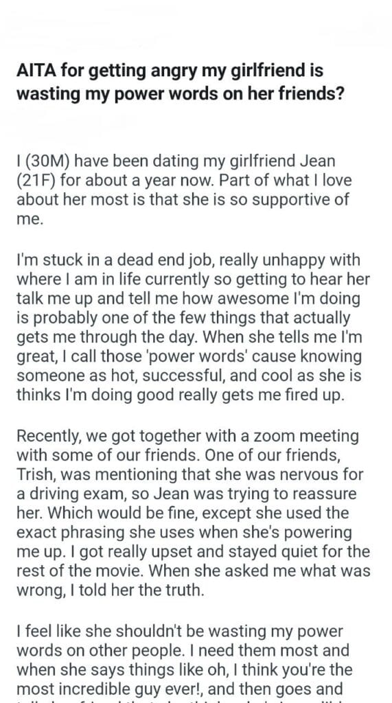 AITA for my power words