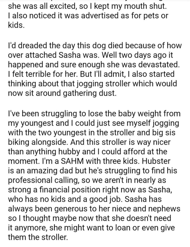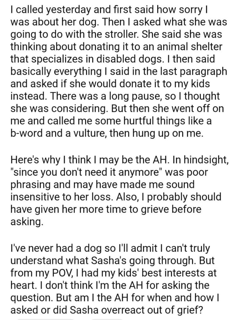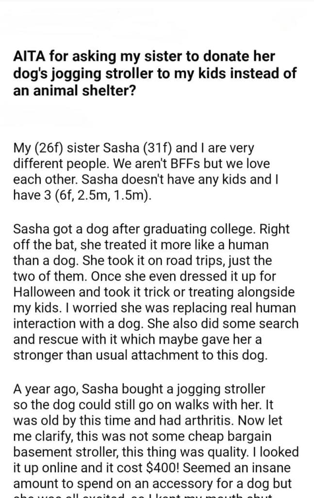 AITA for my sister dog’s jogging stroller