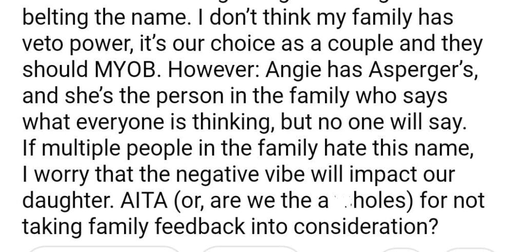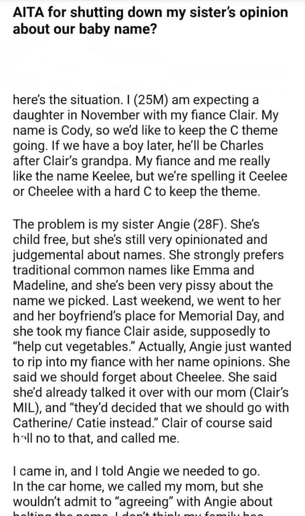 AITA for my sister’s opinion about our baby name?