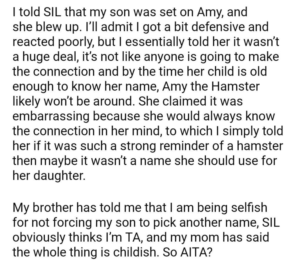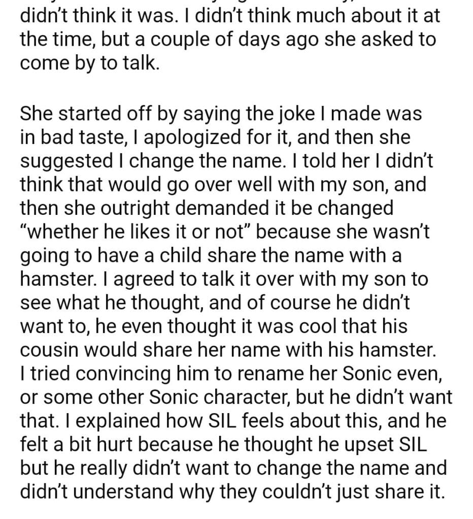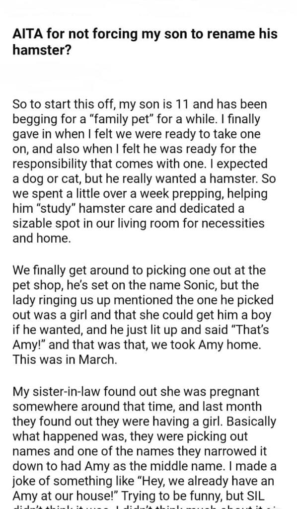 AITA for my son hamster?
