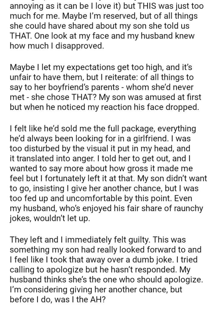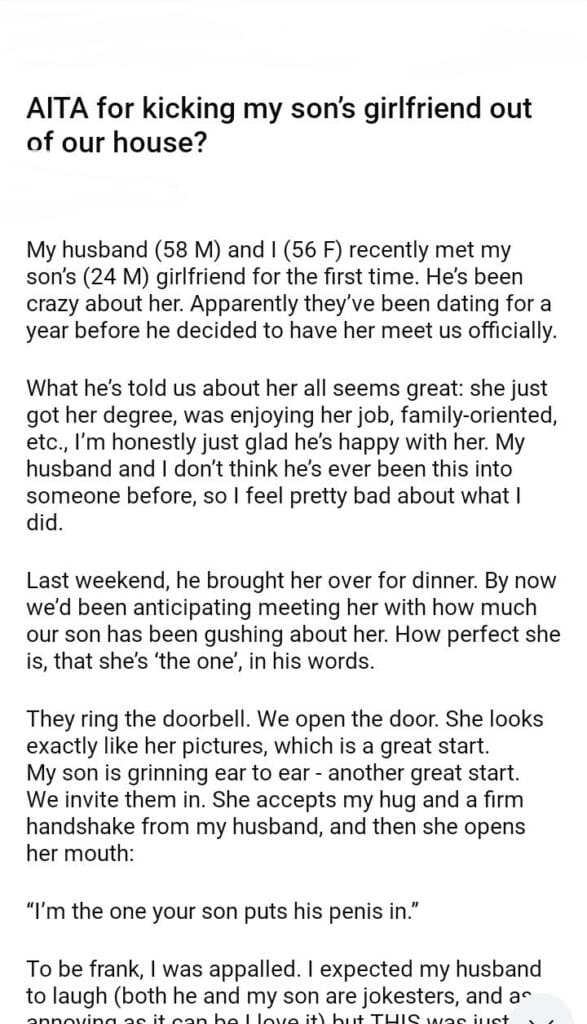 AITA for my son’s girlfriend out of our house?