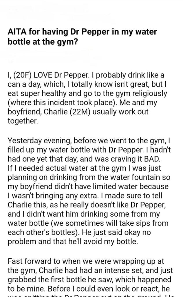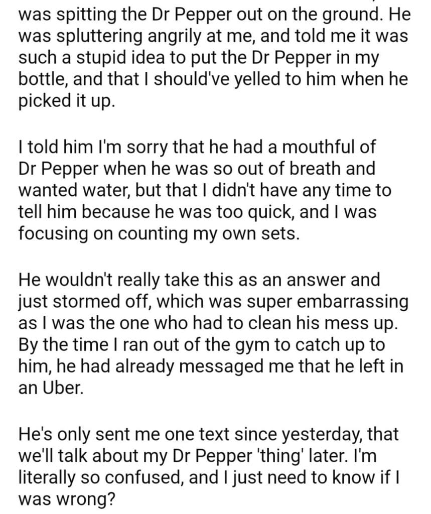 AITA for my water bottle at the gym?