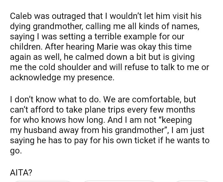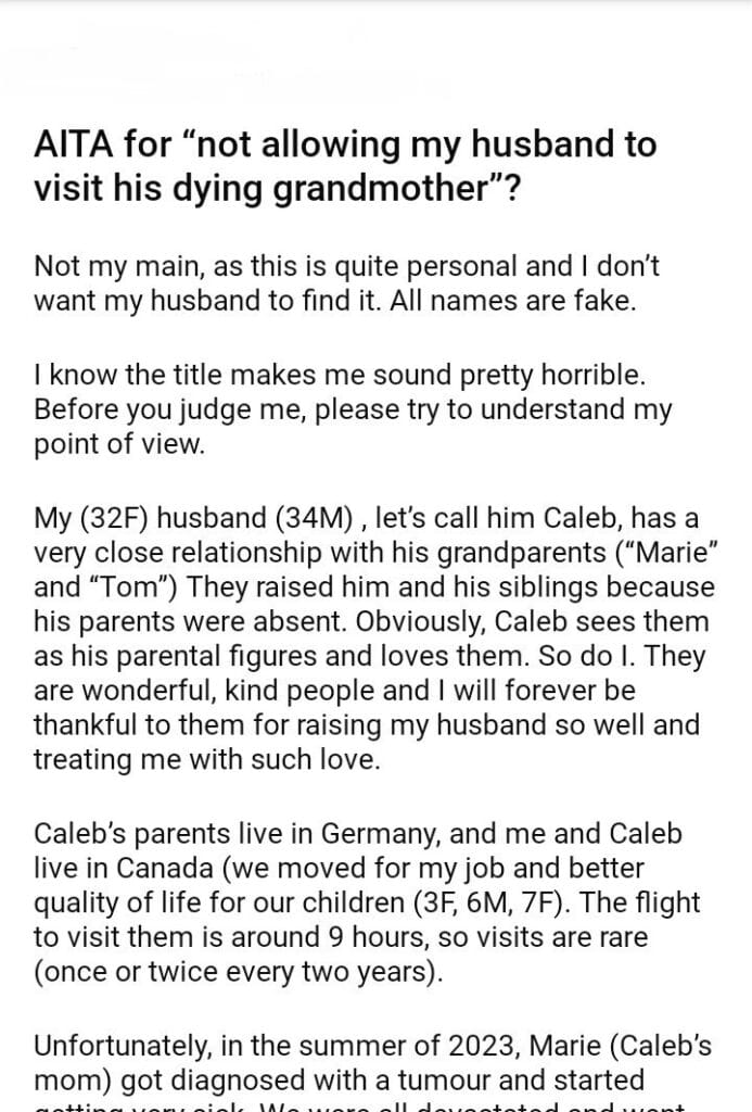 AITA for “not allowing my husband to visit his grandmother”?