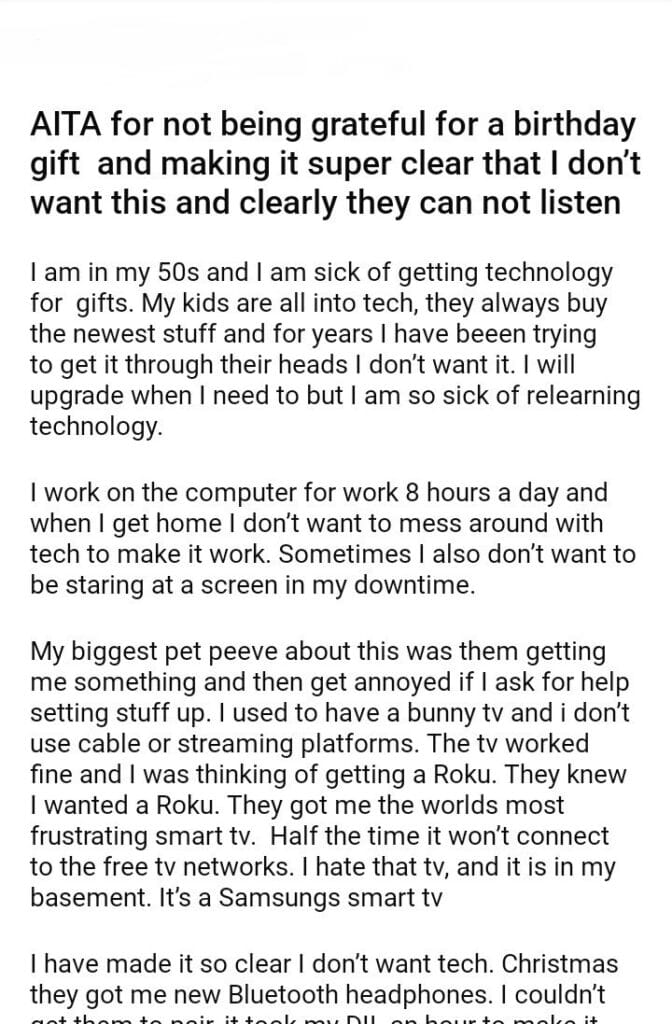 AITA for not being grateful for a birthday gift