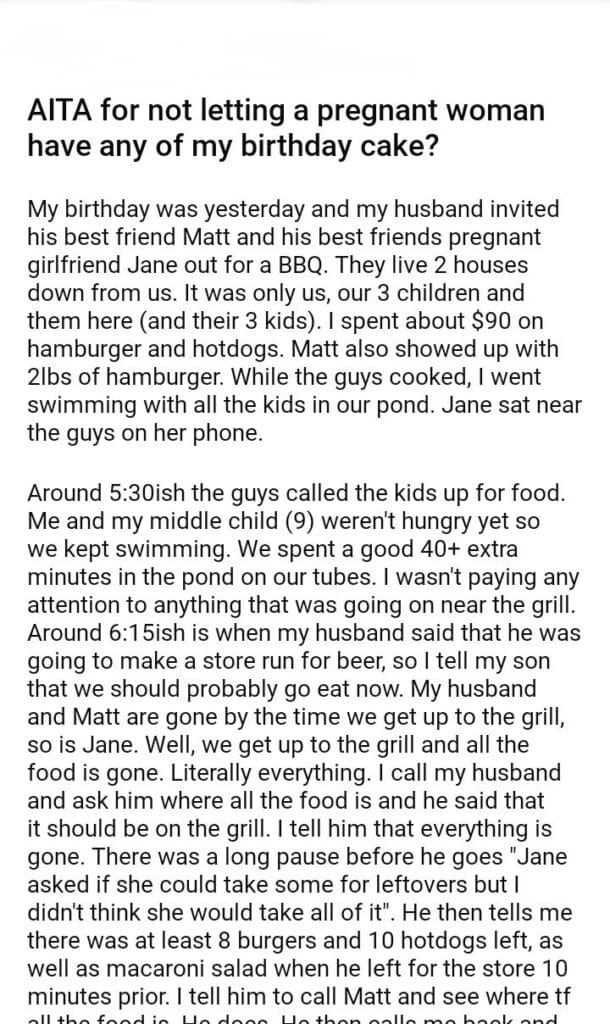 AITA for not letting a pregnant woman have any of my birthday cake?