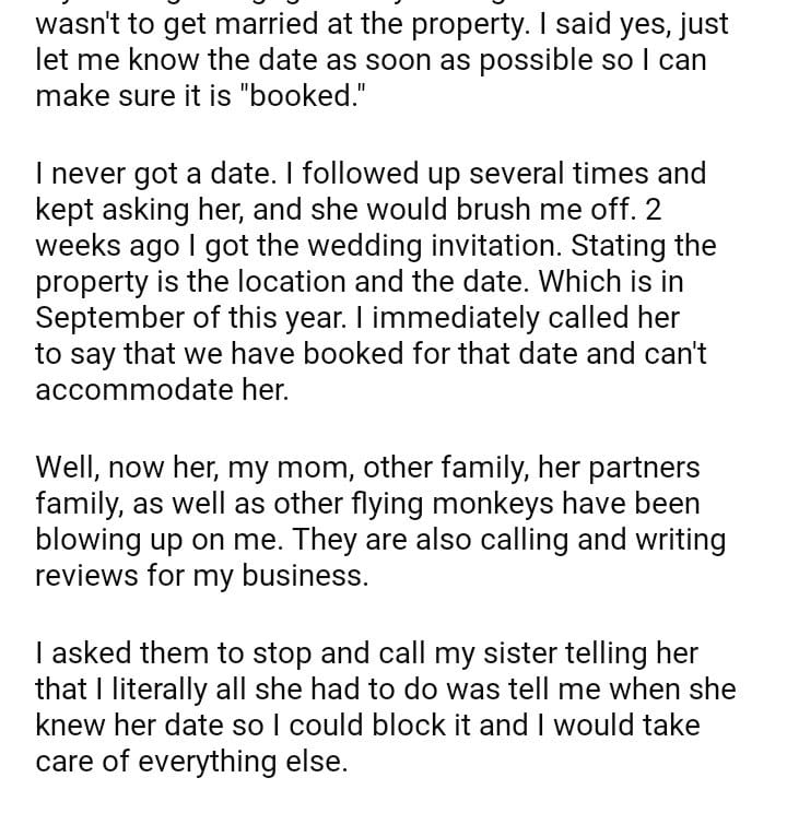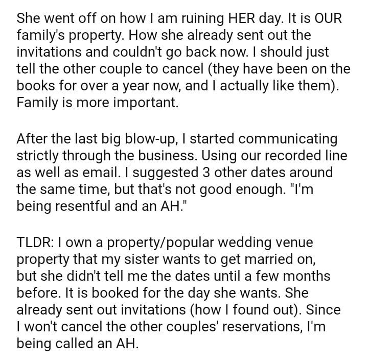 AITA for not letting my sister use “the family property” for her upcoming wedding?