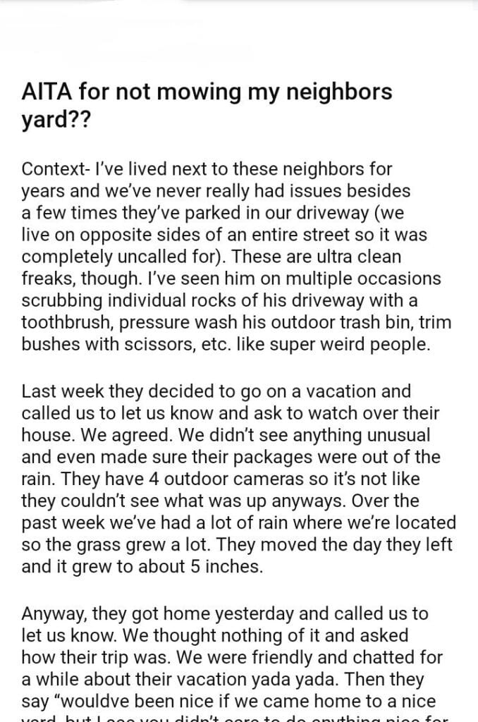 AITA for not mowing my neighbors yard??