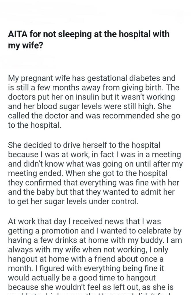 AITA for not sleeping at the hospital with my wife?