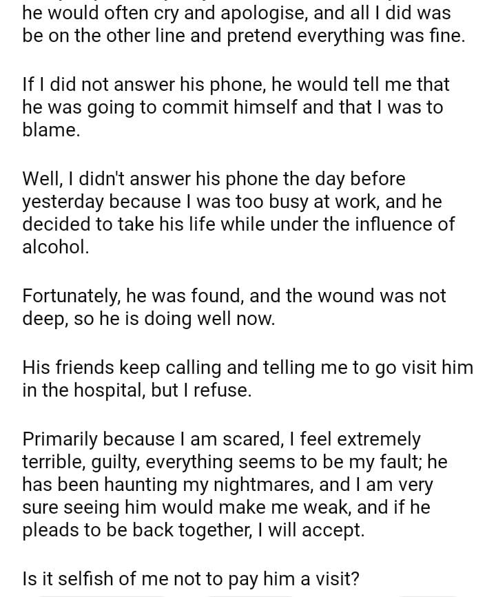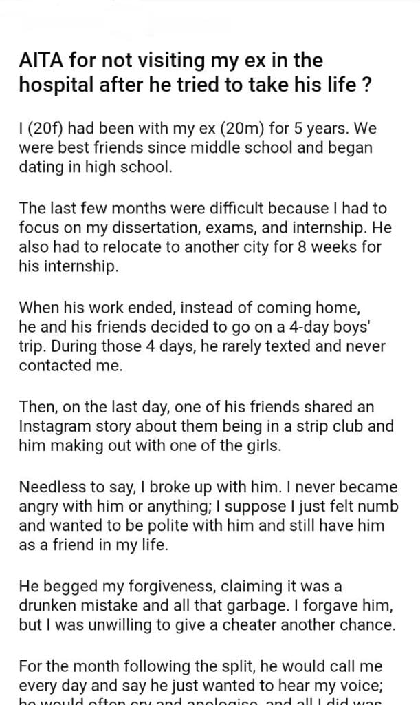 AITA for not visiting my ex in the hospital