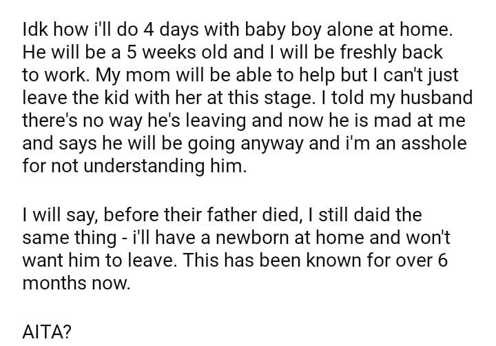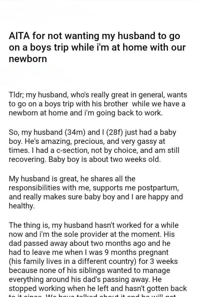 AITA for not wanting my husband to go on a boys trip
