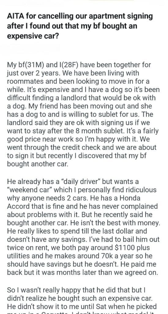 AITA for our apartment signing