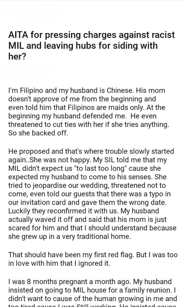 AITA for pressing charges against MIL and leaving hubs for siding with her?