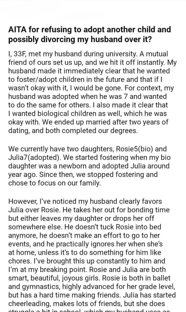 AITA for refusing to adopt another child and possibly divorcing my husband over it?