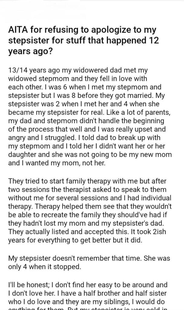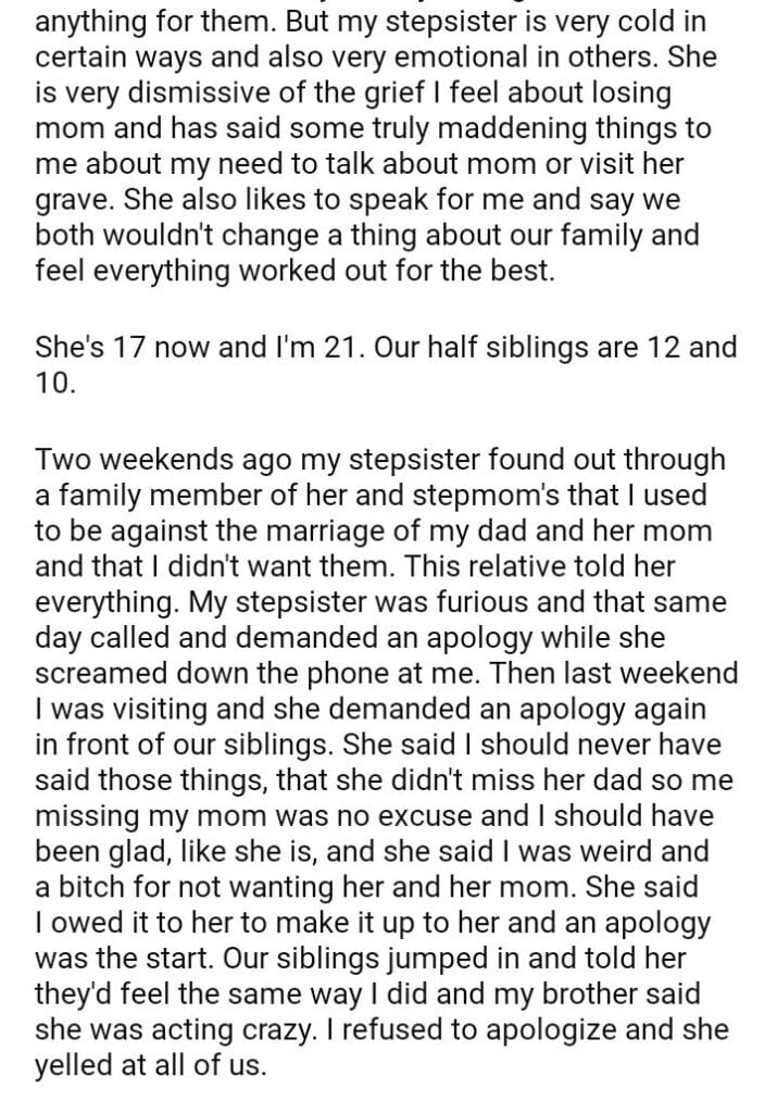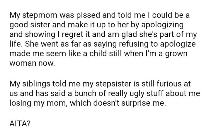 AITA for refusing to apologize to my stepsister