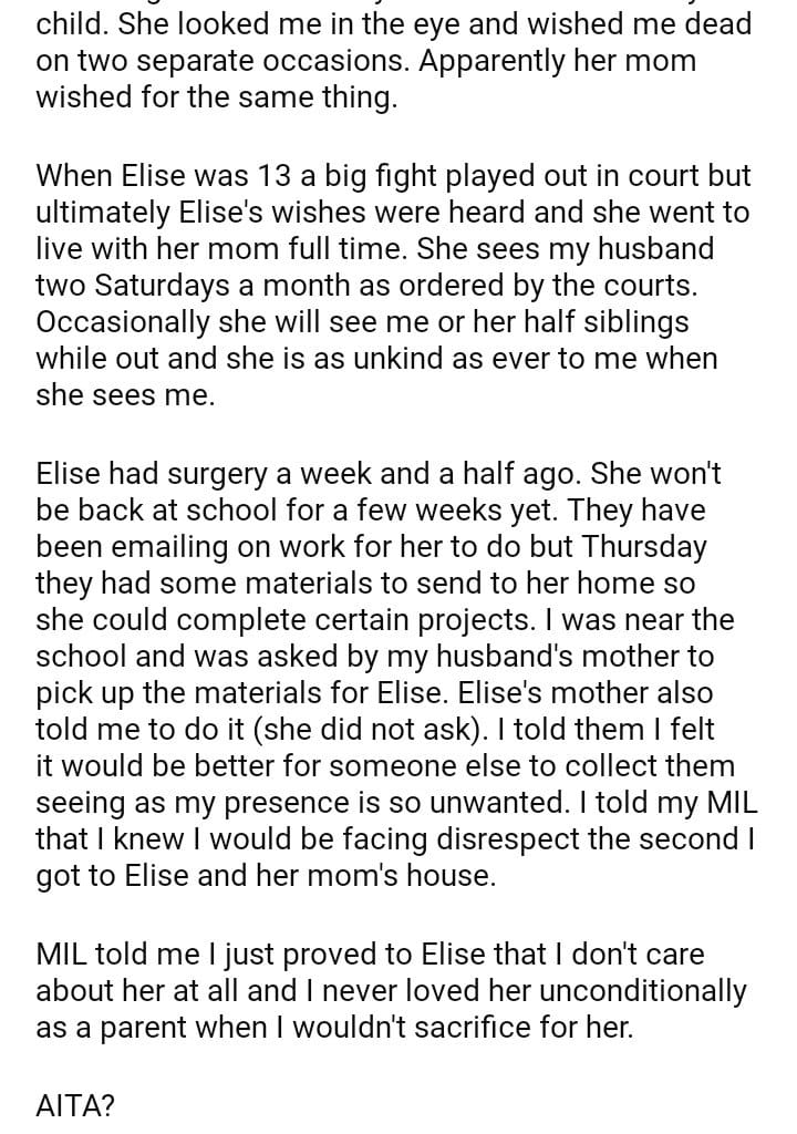 AITA for refusing to bring materials to my stepdaughter