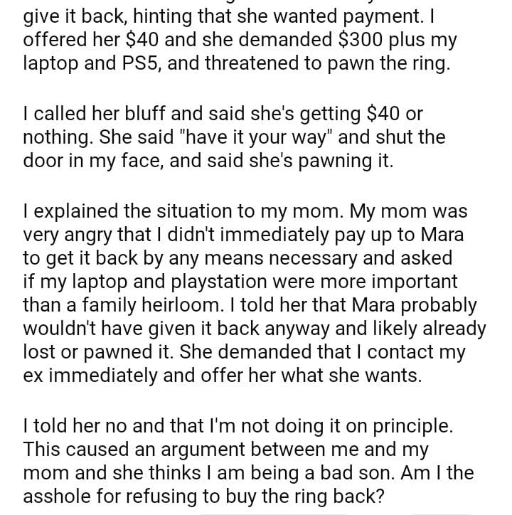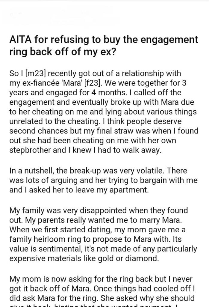 AITA for refusing to buy the engagement ring back off of my ex?