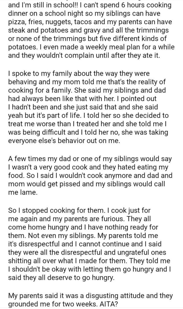 AITA for refusing to cook for my family