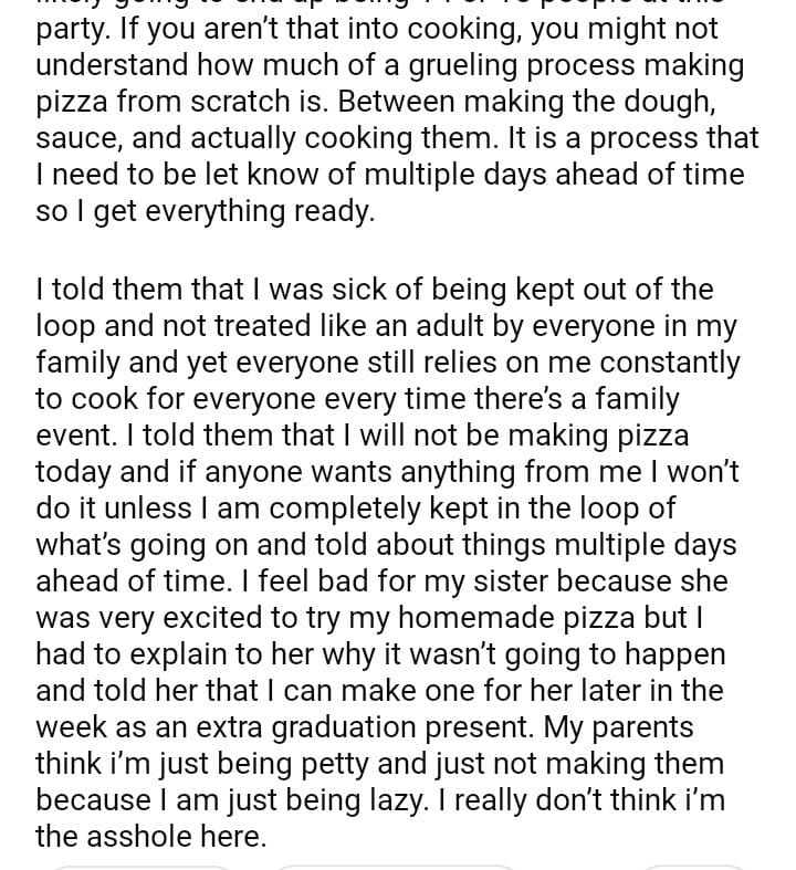 AITA for refusing to make pizzas for everyone