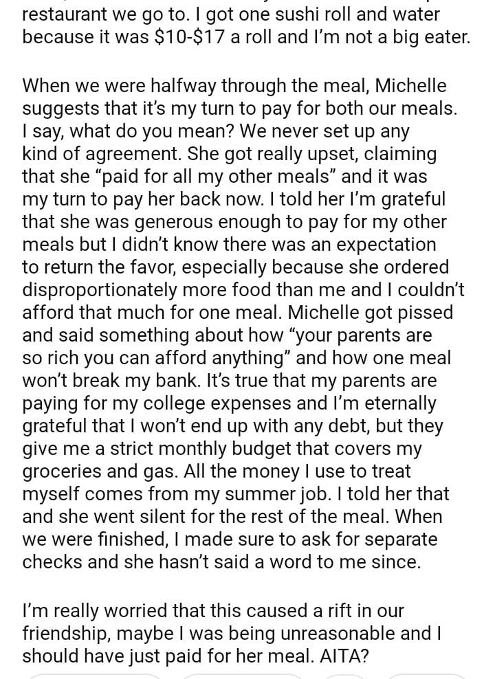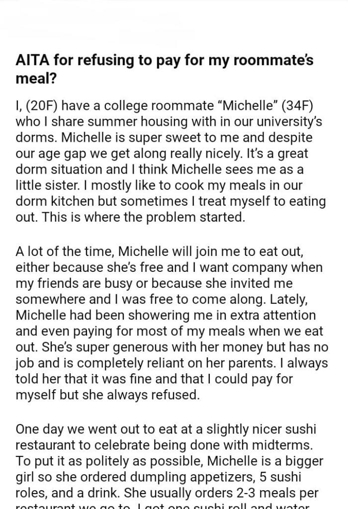 AITA for refusing to pay for my roommate’s meal?