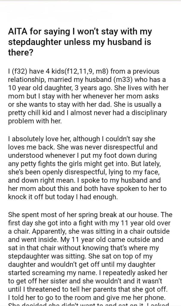 AITA for saying I won’t stay with my stepdaughter